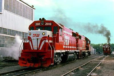 Toledo, Peoria & Western GP38-2 puzzle, based on an original photo by Bob Krone (photo copyright Bob Krone -- used with permission). Photographed at East Peoria, Illinois, May 10, 1980.