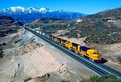 Atchison, Topeka & Santa Fe (ATSF) F45 puzzle, based on an original photo by Marty Bernard (photo copyright Marty Bernard -- used with permission). Photographed at Summit, California, February, 1981.