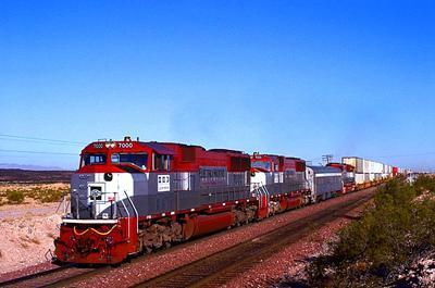 Electro Motive Division (EMD) SD70M puzzle, based on an original photo by Joe Blackwell (photo copyright Joe Blackwell -- used with permission). Photographed at Pisgah, California, October, 1993.