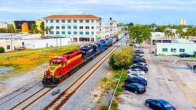 Florida East Coast Railroad (FEC) SD40-2 puzzle, based on an original photo by Joseph Cermak (photo copyright Joseph Cermak -- used with permission). Photographed at Fort Pierce, Florida, February 8, 2024.
