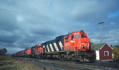 Canadian National Railway M630 puzzle, based on an original photo by Roger Puta (photo copyright Roger Puta -- used with permission). Photographed at Ontario, Canada, October, 1980.