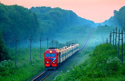 Russian Railways TEP70BS puzzle, based on an original photo by Ilya Semyonoff (photo copyright Ilya Semyonoff -- used with permission). Photographed at Rzev, Tver region, Russia, June 21, 2021.