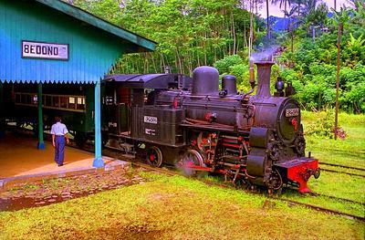 Indonesian Railways 0-4-2T puzzle, based on an original photo by Daniel Simon (photo copyright Daniel Simon -- used with permission). Photographed at Ambarawa, Indonesia, July 11, 2006.