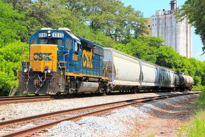 CSX Transportation (CSXT) GP40-2 puzzle, based on an original photo by Steve Hardin (photo copyright Steve Hardin -- used with permission). Photographed at Cartersville, Georgia, May 8, 2015.