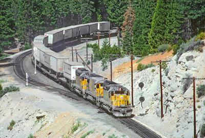 Union Pacific SD40-2 puzzle, based on an original photo by Roger Puta (photo copyright Roger Puta -- used with permission). Photographed at Sloat, California, July 1, 1988.