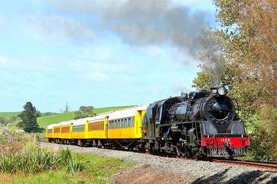 Mainline Steam Heritage Trust 4-8-2 puzzle, based on an original photo by John Russell (photo copyright John Russell -- used with permission). Photographed at Whangarei, New Zealand, April 1, 2018.