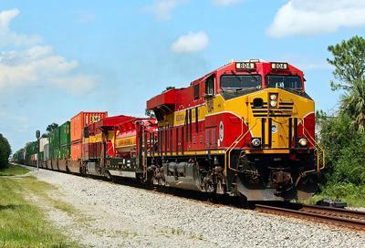 Florida East Coast Railroad (FEC) ES44C4 puzzle, based on an original photo by Bob Pickering (photo copyright Bob Pickering -- used with permission). Photographed at Bunnell, Florida, September 10, 2018.