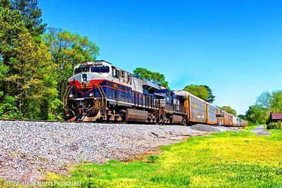 Norfolk Southern ES44AC puzzle, based on an original photo by Steve Hardin (photo copyright Steve Hardin -- used with permission). Photographed at Seney, Georgia, April 15, 2019.