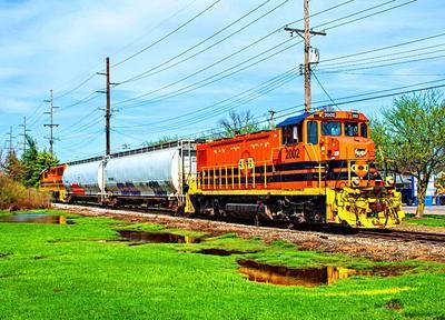 Central Railroad of Indiana RP20BD puzzle, based on an original photo by David Rohdenburg (photo copyright David Rohdenburg -- used with permission). Photographed at Rossmoyne, Ohio, March 30, 2021.