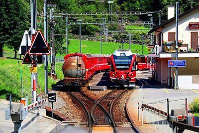 RhB ABe 8/12 puzzle, based on an original photo by Bruno Dietliker (photo copyright Bruno Dietliker -- used with permission). Photographed at Brusio, Switzerland, August 10, 2020.
