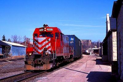 Wisconsin & Southern GP7u puzzle, based on an original photo by Greg Mross (photo copyright Greg Mross -- used with permission). Photographed at Waukesha, Wisconsin, March, 1993.