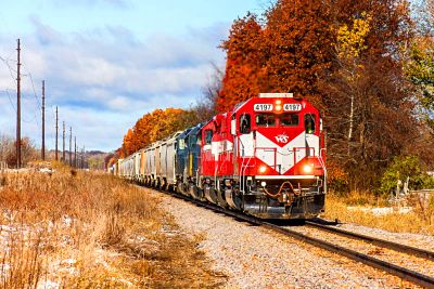 Wisconsin & Southern SD40-2 puzzle, based on an original photo by Adam Weddle (photo copyright Adam Weddle -- used with permission). Photographed at Stoughton, Wisconsin, November 10, 2025.